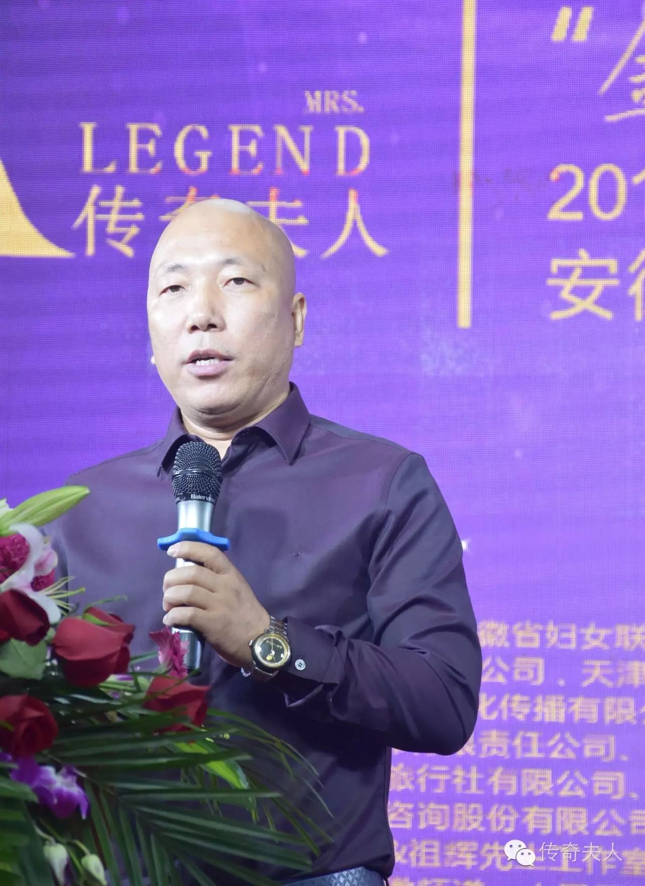 在主持人介绍完领导嘉宾后,董前进先生应邀上台致辞,他说:“世界传奇夫人大赛自2015年引进安徽以来,已经取得了丰硕的成果,去年在安徽合肥、蚌埠、淮南、芜湖、阜阳5个地级市展开,吸引了上千人参与,得到了社会各界的广泛好评,造就了一大批优秀的夫人。今年,安徽赛区将会扩展到安徽省内所有的地级市,让更多的已婚女性有机会走上舞台,圆夫人们的美丽梦、舞台梦、家庭梦、事业梦、健康梦!让她们成为孩子的榜样、丈夫的骄傲、家族的荣耀,引领全社会女性树立自信、追求梦想,成为新时代的楷模夫人”!