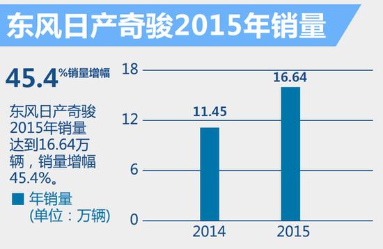 2015年,东风日产品牌年销量突破了一百万,其中旗下奇骏车型年累计销量达到了16.64万辆,与2014年相比增长了45.37%,助力东风日产品牌成功跻身“百万俱乐部”。新款奇骏增搭1.2T涡轮增压发动机后,在保证新车动力输出的同时油耗也将大幅降低。新车上市将有望占据细分市场更多份额。(网通社 2016年3月1日 北京报道)