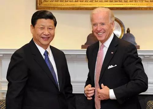 图为:2012年2月14日,中国国家副主席习近平在华盛顿白宫与美国副总统拜登举行会谈。