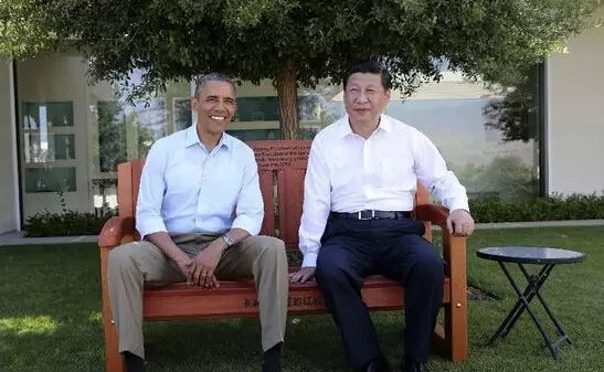 图为:2013年6月7日,中国国家主席习近平在美国加利福尼亚州安纳伯格庄园与美国总统奥巴马举行中美元首第一次会晤。
