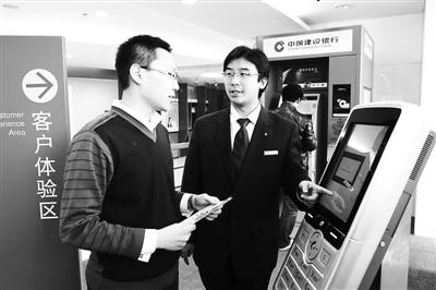 银行工作人员正在向客户讲解如何安全使用手机银行