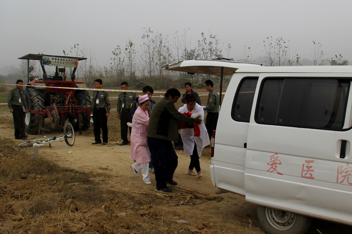 演练现场,喜耕田农机合作社一名机手驾驶拖拉机在机耕路上与一名骑自行车行人发生碰撞,造成重伤事故。事故发生后,驾驶员及时拨打120急救中心,向县农机监理站和保险公司报案。县农机监理站接到事故报案后,立即启动固镇县农机安全事故应急处理预案,并向县安监局和县应急办报告,迅速组织农机监理人员赶赴事故现场,与120急救中心、保险公司等应急救援人员开展救治伤员、隔离现场、现场勘查、测量照相、绘制现场图、做询问笔录等,监理人员分工明确、反应迅速,处置有力,仅30分钟事故应急处理完毕,道路恢复畅通。演练结束,县农机局分管领导对本次演练进行总结和点评。认为此次演练从事故报案、出警到现场救护、隔离、勘察立足实际、贴近实战,达到了预期效果。通过演练,进一步检验固镇县农机事故应急预案,提高农机事故应急处置水平,增强农机安全生产意识和农机事故防范能力,推动农机安全生产。(刘君)
