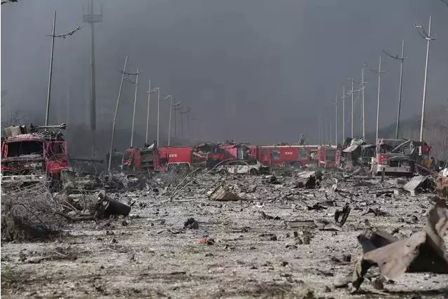 天津爆炸核心现场满目疮痍
