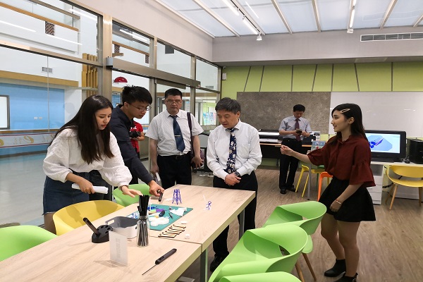 在南华大学访问期间,我校访问团参观了南华大学智能环控植物工场、图书馆、翻转教室、TED演练室、3D列印教室、虚拟摄影棚、星云大师一笔字墙、视觉设计系和产品设计系作品展、民族乐器展,并与民族音乐学系主任冯智皓教授(澳籍华人)进行交流互动,现场聆听冯教授的二胡独奏《赛马》。