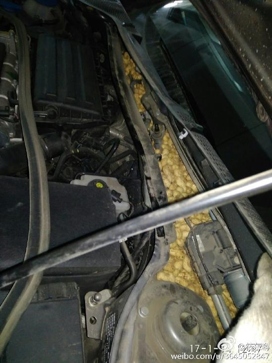 1月14日,微博用户@筱东嘚 在修理汽车的时候,发现了一个令人难以接受,甚至还有点恶心的事实:
