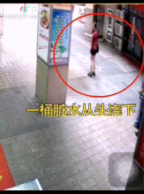 3楼泼下一桶脏水 1楼女孩被浇了个透心凉