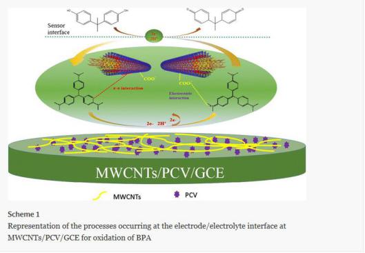 塑料奶瓶以及食品包装中广泛存在的双酚A(BPA),是对人类有激素效果的化工原料,世界各国均有严格限量标准。该论文通过多壁碳纳米管和结晶紫复合修饰玻碳电极,利用多壁碳纳米管对电极有效检测面积的增大和二者的协同效应,提高了对于食品包装塑料样品中BPA的检测灵敏度,该方法新颖,通过对实际样品的检测,结果优于已报道文献。